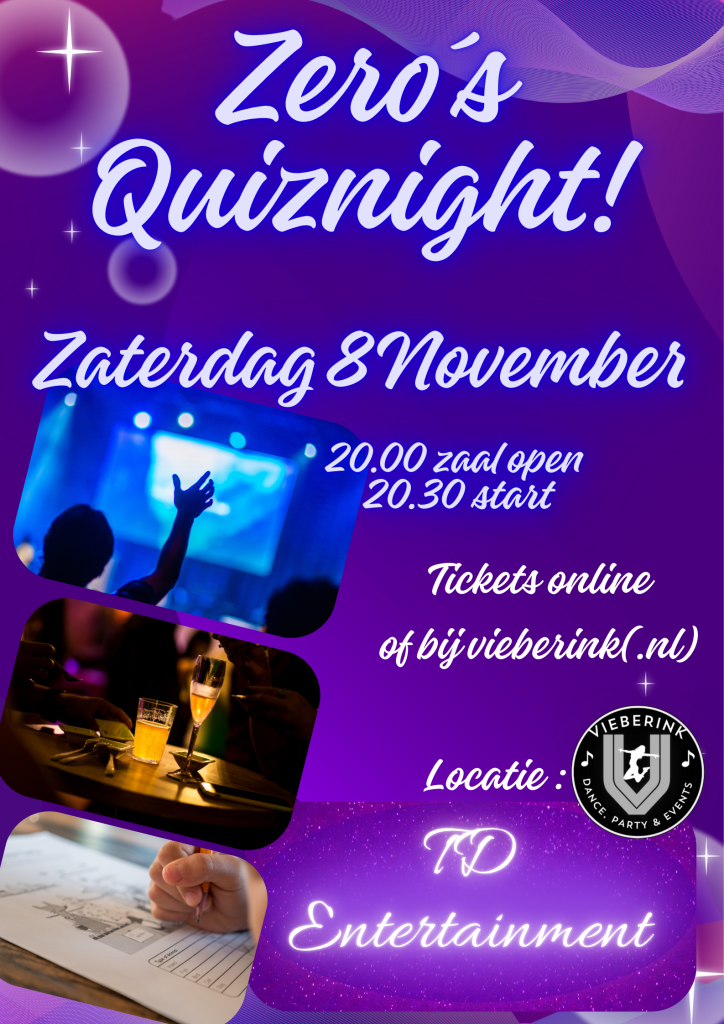 Zero´s Quizz!! 8 November Boek nu je kaarten!